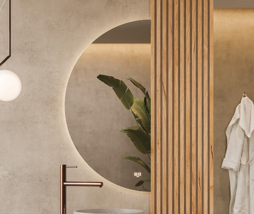 O Espelho Bow destaca-se pelo seu formato circular marcante e pela iluminação embutida suave, criando um efeito de luz ambiente sofisticado. Ideal para casas de banho modernas e minimalistas, este espelho transforma o espaço com estilo contemporâneo e conforto visual, adaptando-se perfeitamente a ambientes que valorizam o design e o bem-estar.