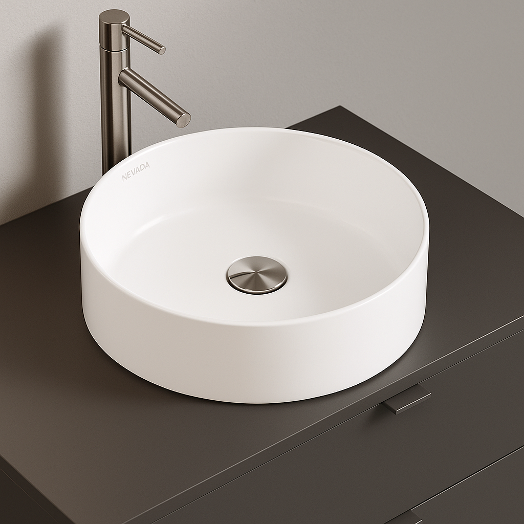 O lavatório de pousar Nevada é a escolha ideal para quem procura um design moderno e elegante na casa de banho. Com 40 cm de diâmetro e fabricado em cerâmica de alta qualidade, combina durabilidade com estilo. Disponível em quatro acabamentos distintos — branco, preto matte, bronze brilho e ouro brilho — adapta-se facilmente a diferentes estilos de decoração, conferindo um toque sofisticado e contemporâneo ao ambiente. Fácil de instalar e limpar, é perfeito para renovar a sua casa de banho com bom gosto e funcionalidade.